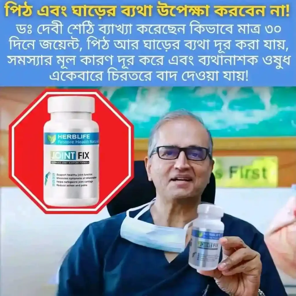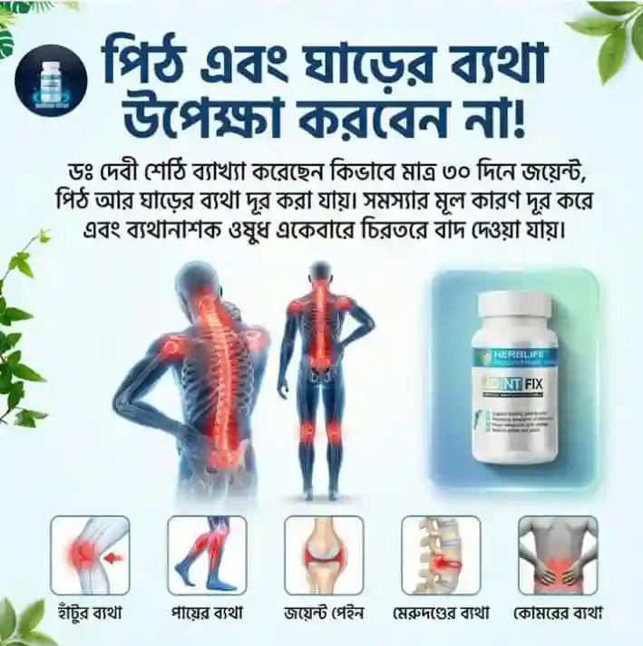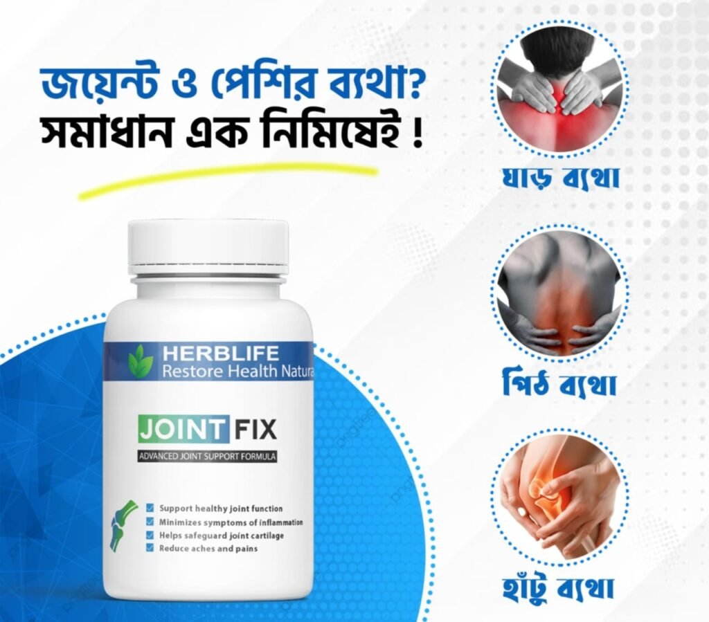 Joint Fix হাঁটু ও কোমরের ব্যথা নিরাময় করে, হাড় ও জয়েন্টকে করে শক্তিশালী। চলাফেরার সক্ষমতা বাড়ায়, স্বাভাবিকভাবে হাঁটা-চলা সহজ করে। এটি প্রাকৃতিকভাবে কোনো ভারী কেমিক্যাল ছাড়াই ভেষজ উপাদানের তৈরি।